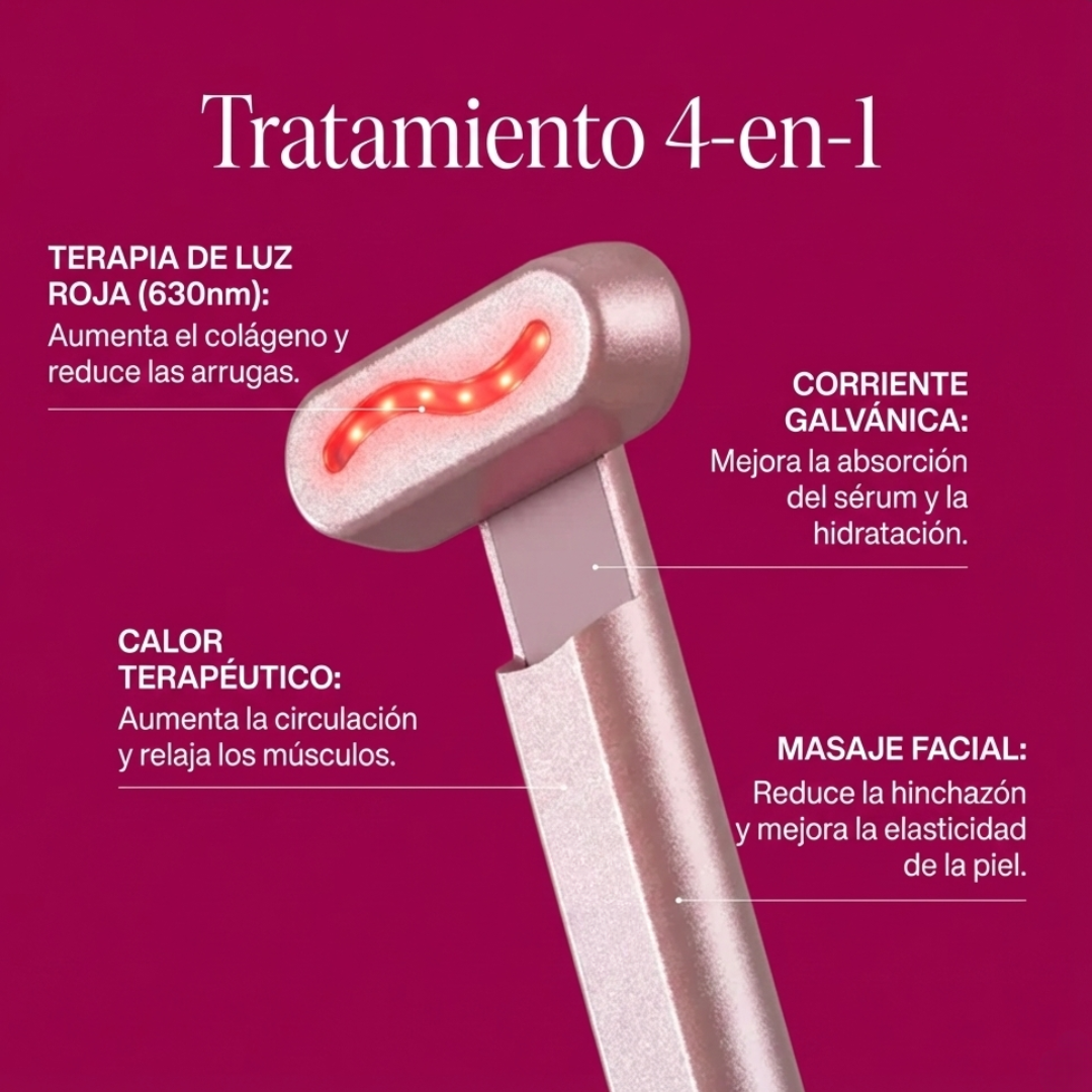 ¡Sí! La varita Glowish 4 en 1 está diseñada para todo tipo de piel, incluso las más sensibles. Su tecnología es suave, no invasiva y apta para usar con tus productos favoritos de cuidado facial.